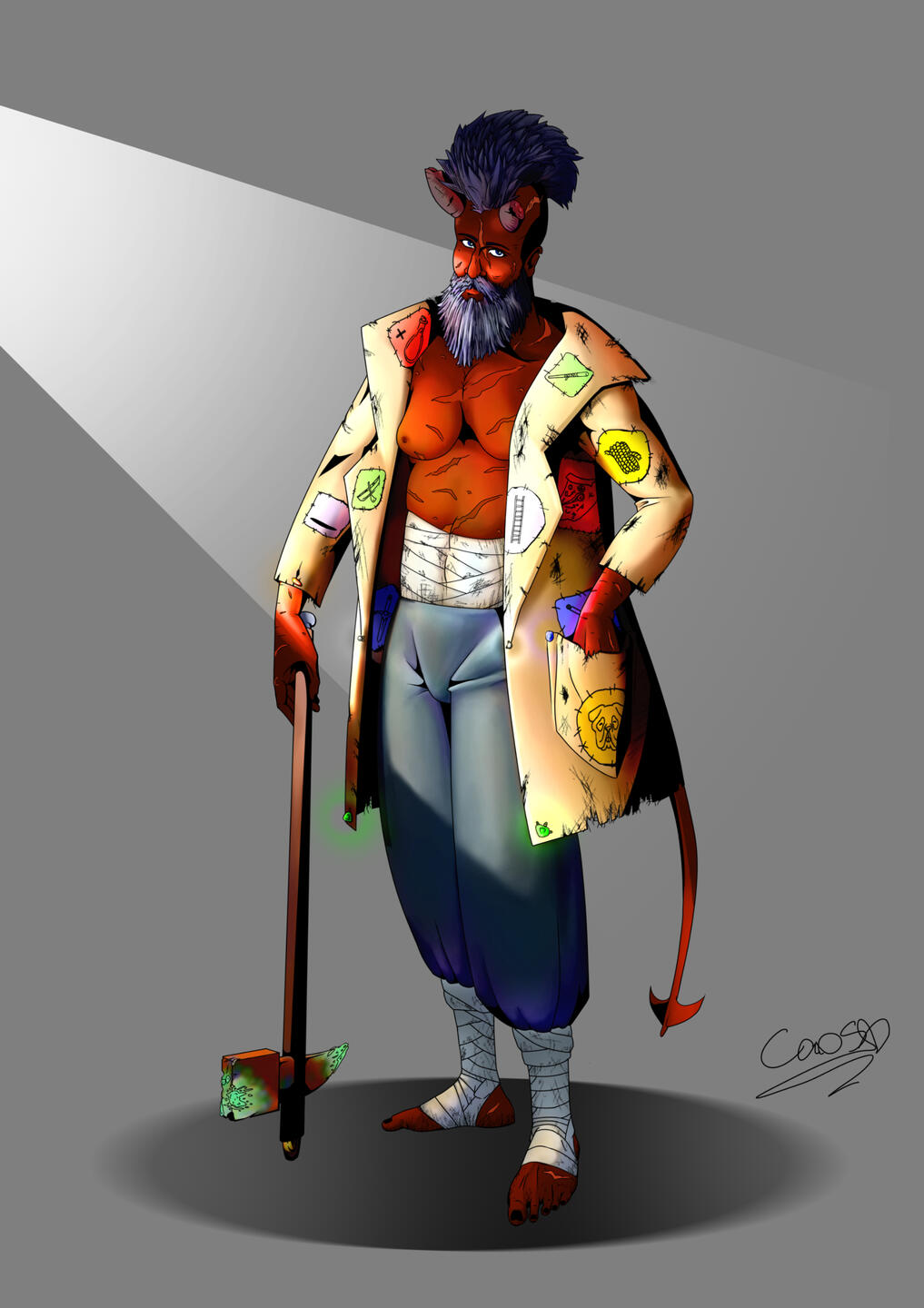 - A cell shading illustration is ready. But a full render still has textures and lighting effects to be discussed. At this step, I will send some isolated swatches for the various materials present. This way, you may tweak the metals to be more polished or the fabrics to be more tattered before all the time it would take to apply texture everywhere it fits.